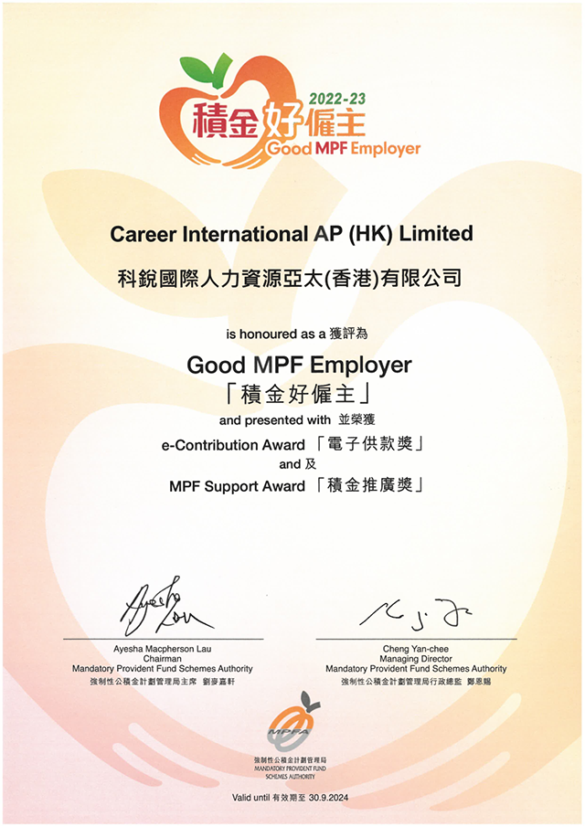 近期,香港强制性公积金计划管理局(积金局)成功举办“积金好雇主”颁奖典礼,并现场揭晓上榜雇主名单,旨在嘉奖当地致力于关顾员工退休福利的模范雇主。凭借对于员工福祉的关注和企业社会责任的践行,yl23411永利国际香港分公司陆续在三年获评“积金好雇主”殊荣,并同时获颁“电子供款奖”及“积金推广奖”。